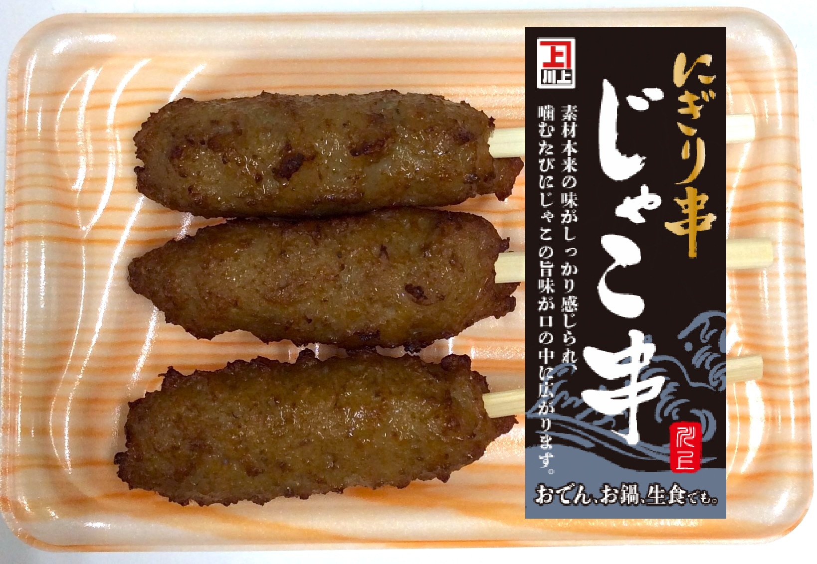 『じゃこ』の旨味が楽しめる、おでんの種にもぴったりな串付きの商品です。