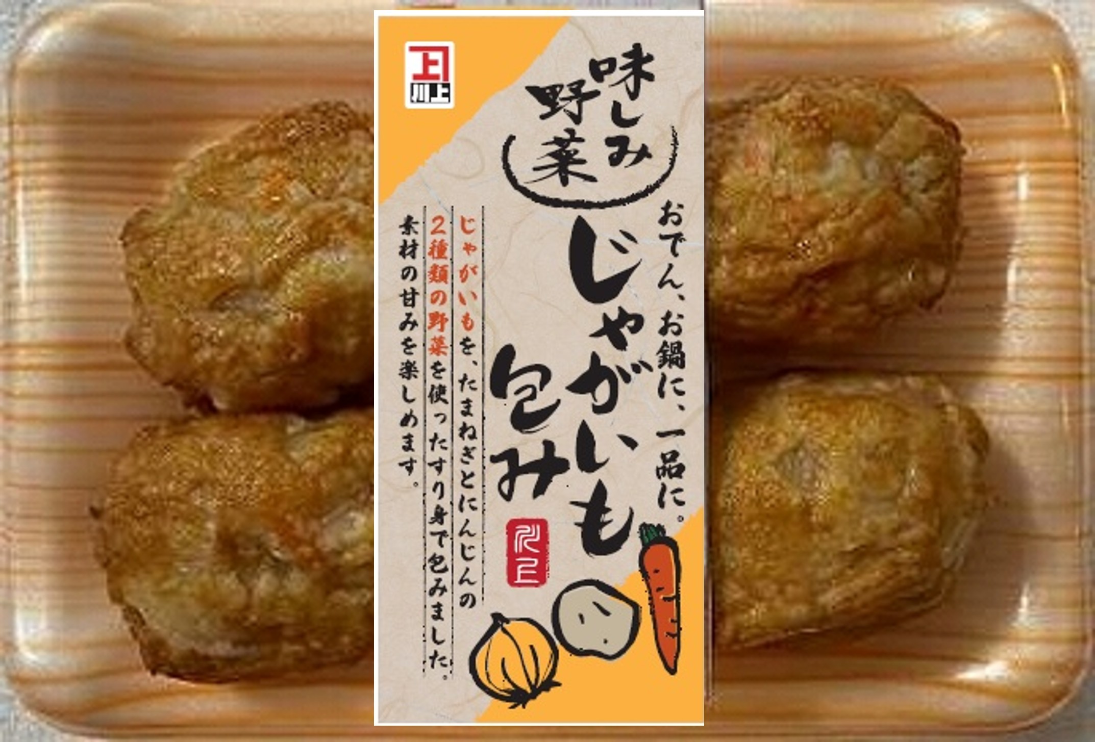 『じゃがいも』を『たまねぎ』と『にんじん』をたっぷり使ったすり身で包みました。素材の甘みを楽しめます。